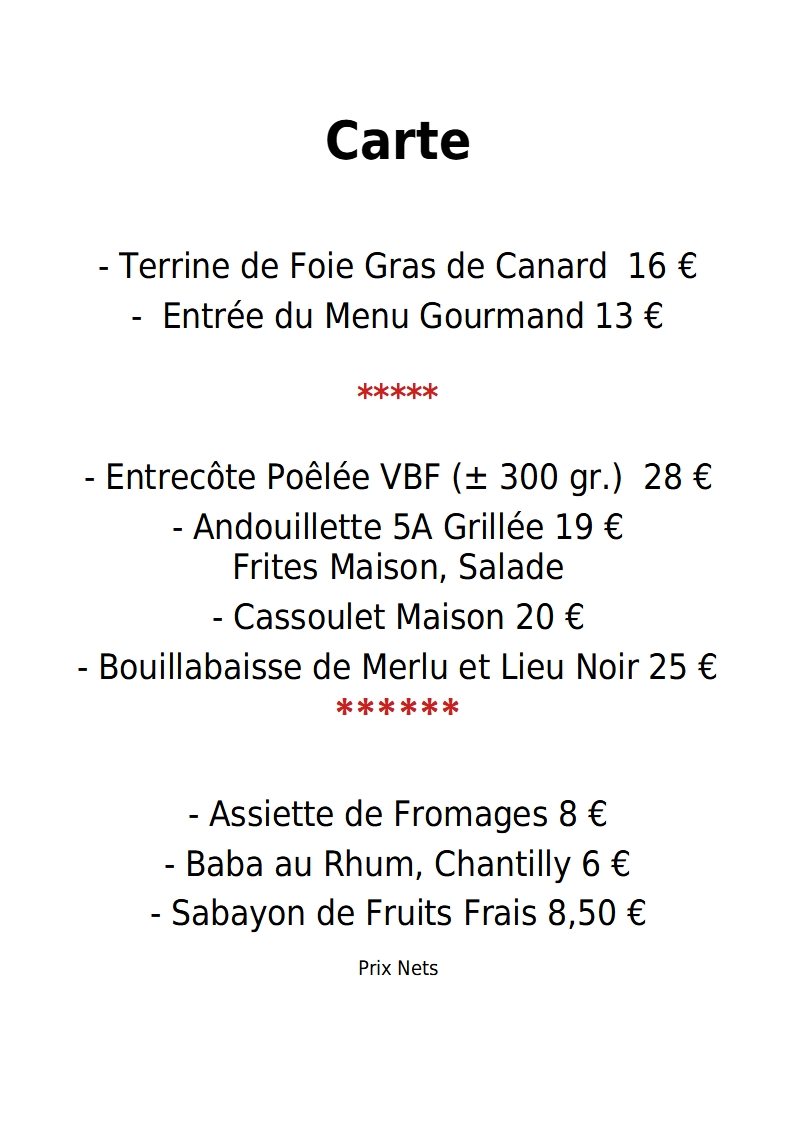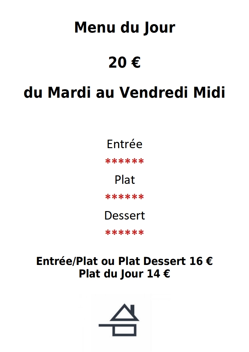 Nous sommes ouverts 6 jours par semaine de 12h00 à 14h30 et de 19h00 à 21h30. Nos jours de fermeture sont: